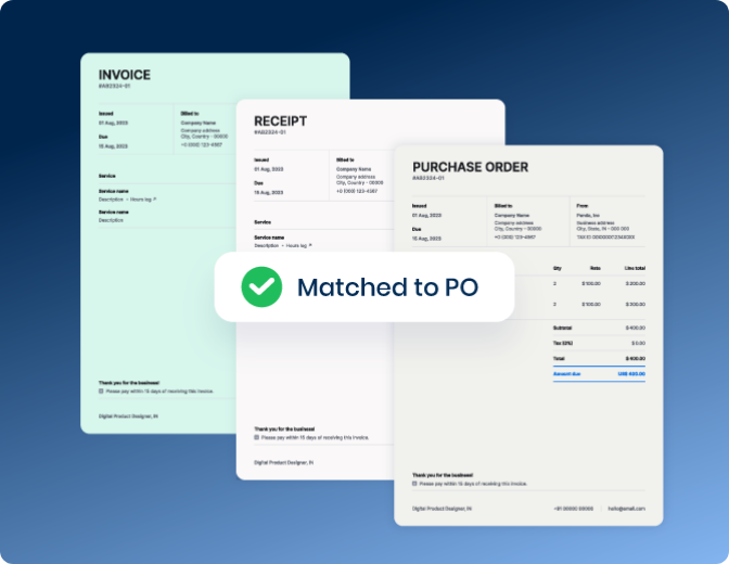 Our 2-way and 3-way matching streamlines the invoice processing and payment process by comparing and contrasting vendor invoices with purchase orders and receipts, reducing the risk of errors and discrepancies. It improves efficiency and accuracy in your accounts payable system, saving you time and resources.