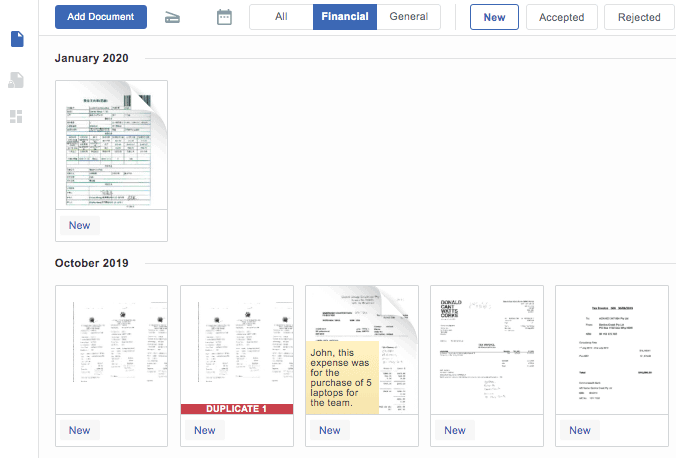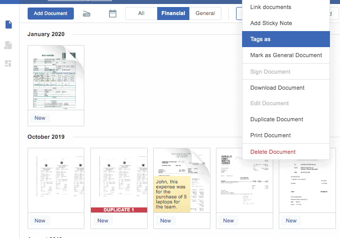 So previously if the non-financial people using DOKKA wanted to discuss an issue with the bookkeeper, they would use the chat feature, but now they have the option to write sticky notes on the documents after they submit.