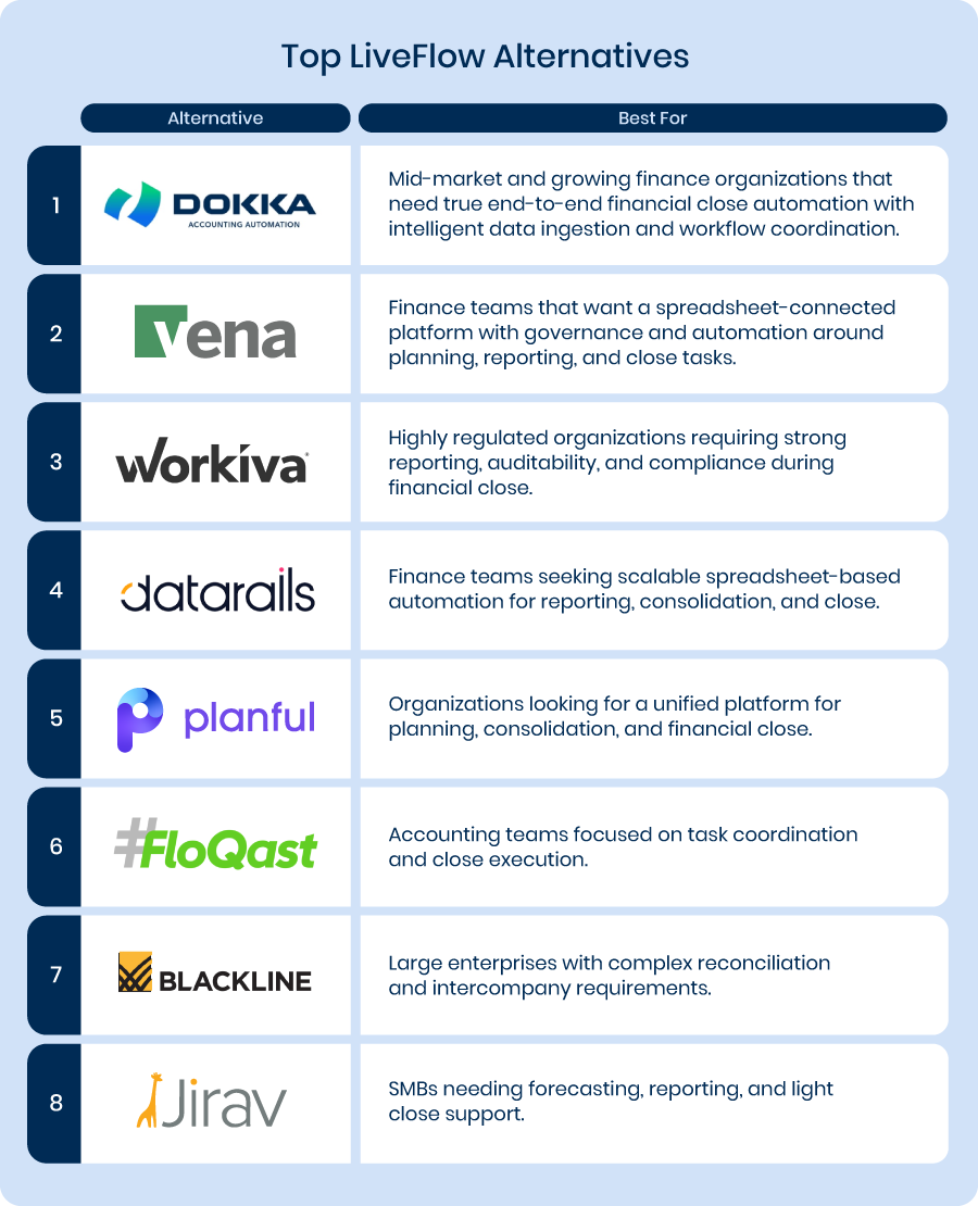8 Best LiveFlow Alternatives For Financial Close Automation
