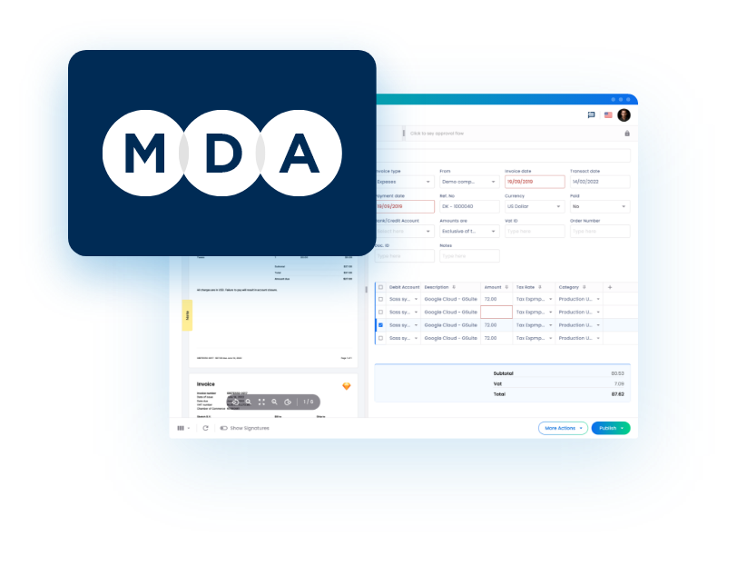 DOKKA captures invoice data and uses AI and Smart OCR to create journal entry recommendations. The transaction, together with the file will be created and uploaded into MDA (MRI). This completely eliminates the need for manual data entry and streamlines your accounts payable process.
