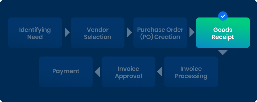 A goods receipt note (GRN) is created within the system to confirm receipt, documenting that the goods or services have been received as per the order. This automated step ensures accountability and traceability in the receipt of goods.